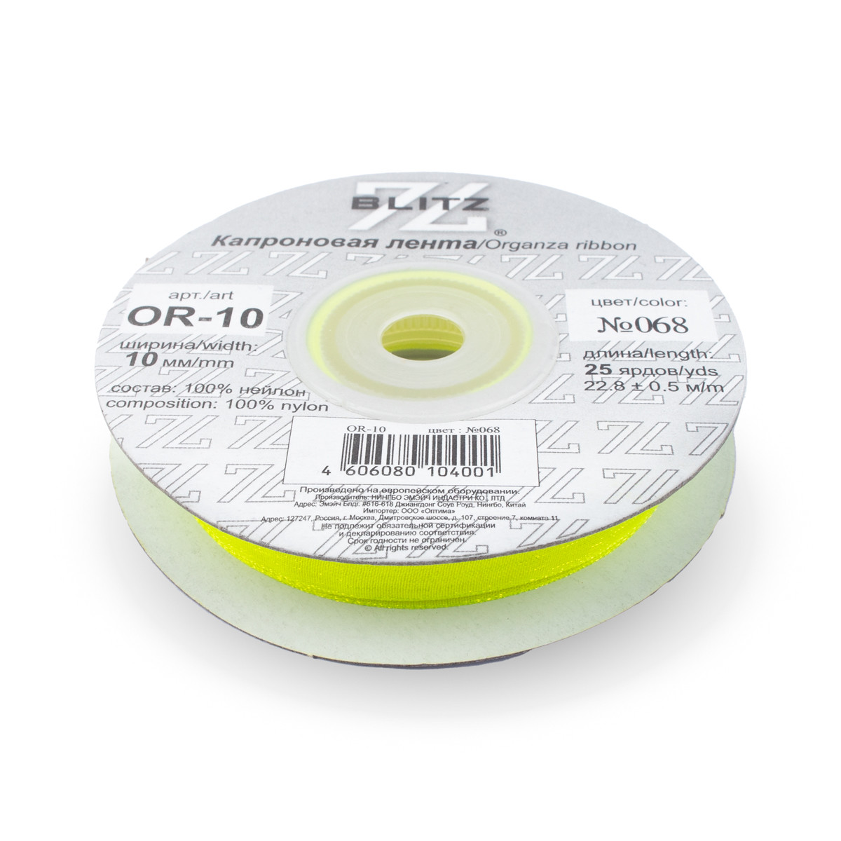 Лента капроновая OR-10 №068 салатовый